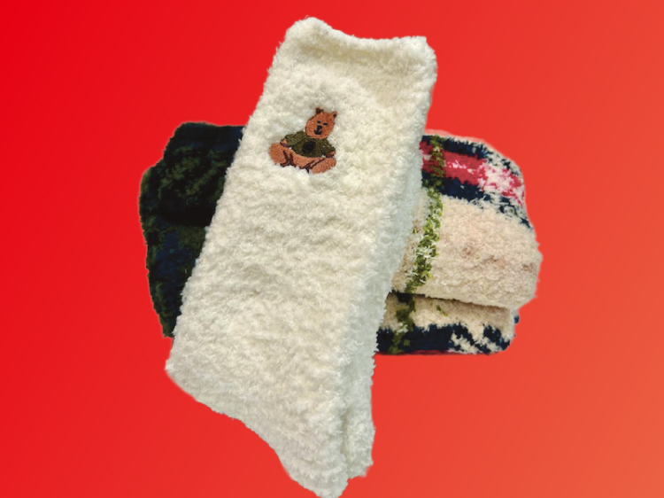 伸縮性のある非常に柔らかく心地良い肌触りのニット生地で作られたあったかソックス。